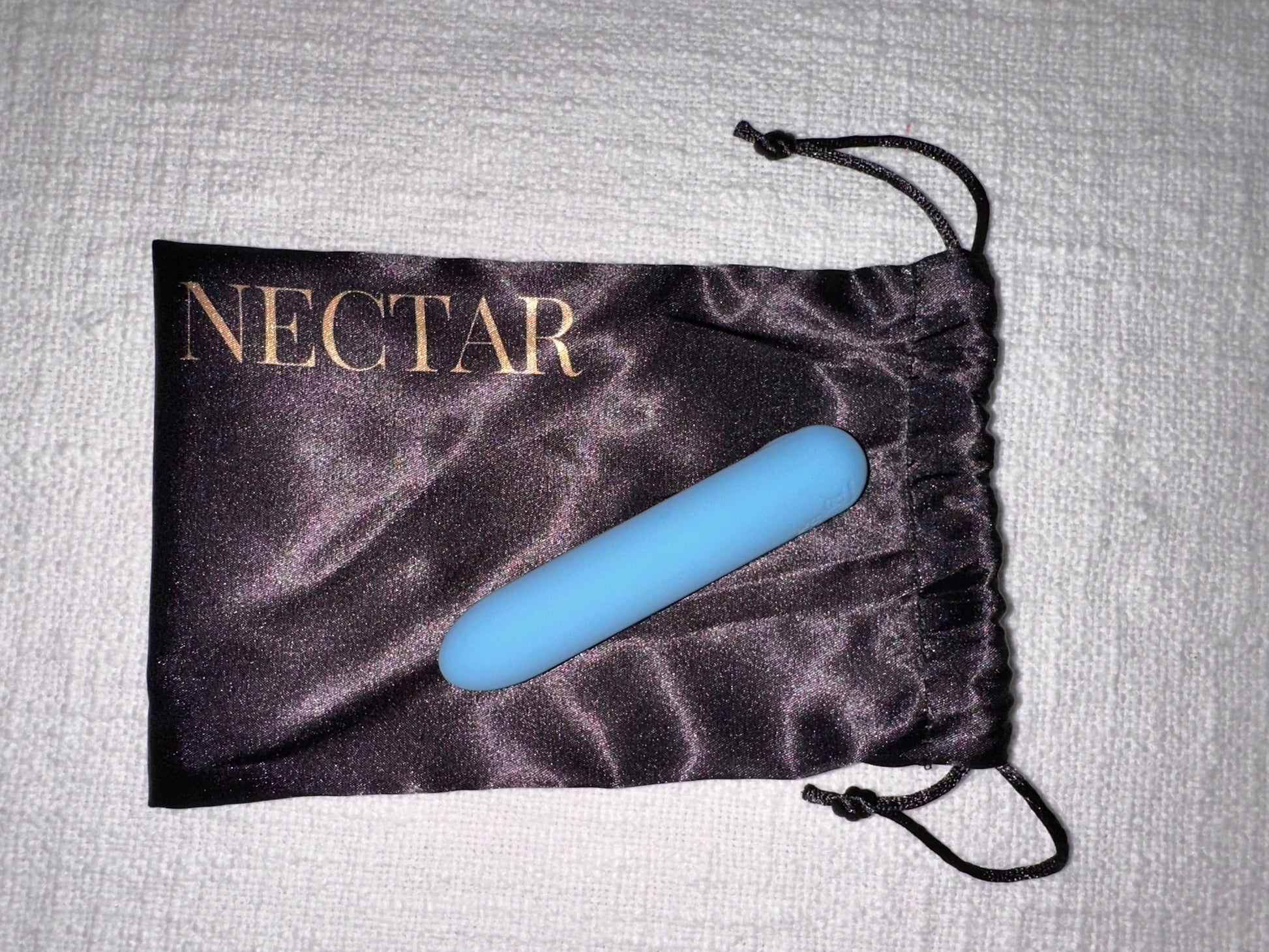 Wash with body-safe toy cleaner or warm soapy water. Pat dry and store in your Nectar pouch.