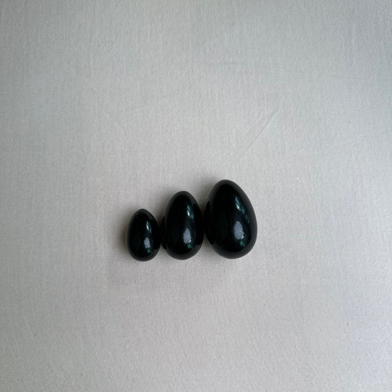Begin with the largest egg and work your way to the smallest as your muscles awaken. Insert gently with lubricant, hold, squeeze, or move with intention. Each egg comes drilled for easy removal with string or floss. Start with short sessions and build your practice over time.